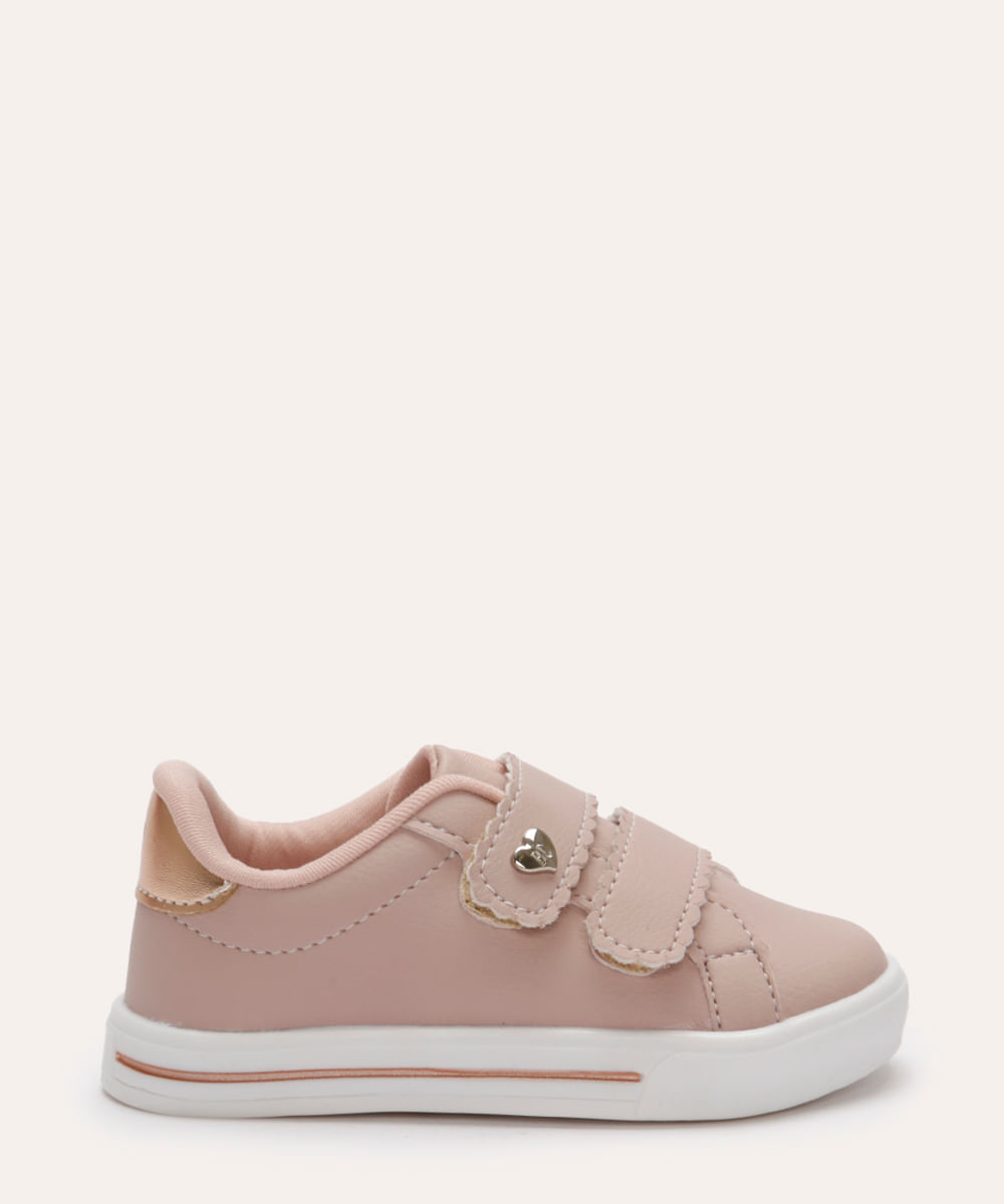tênis infantil corações com velcro rosa
