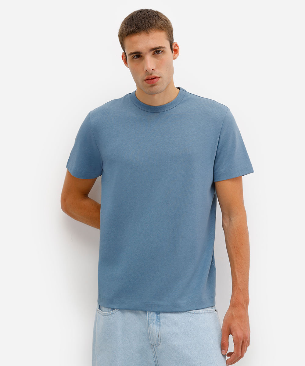 camiseta comfort masculina de algodão peruano e liocel azul