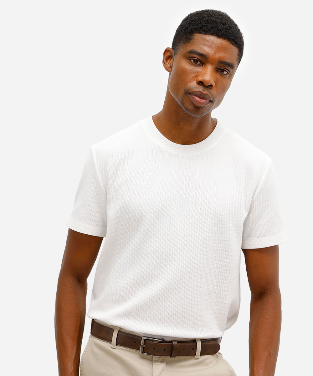 Camiseta Masculina Básica Texturizada Manga Curta Gola Careca Off White
