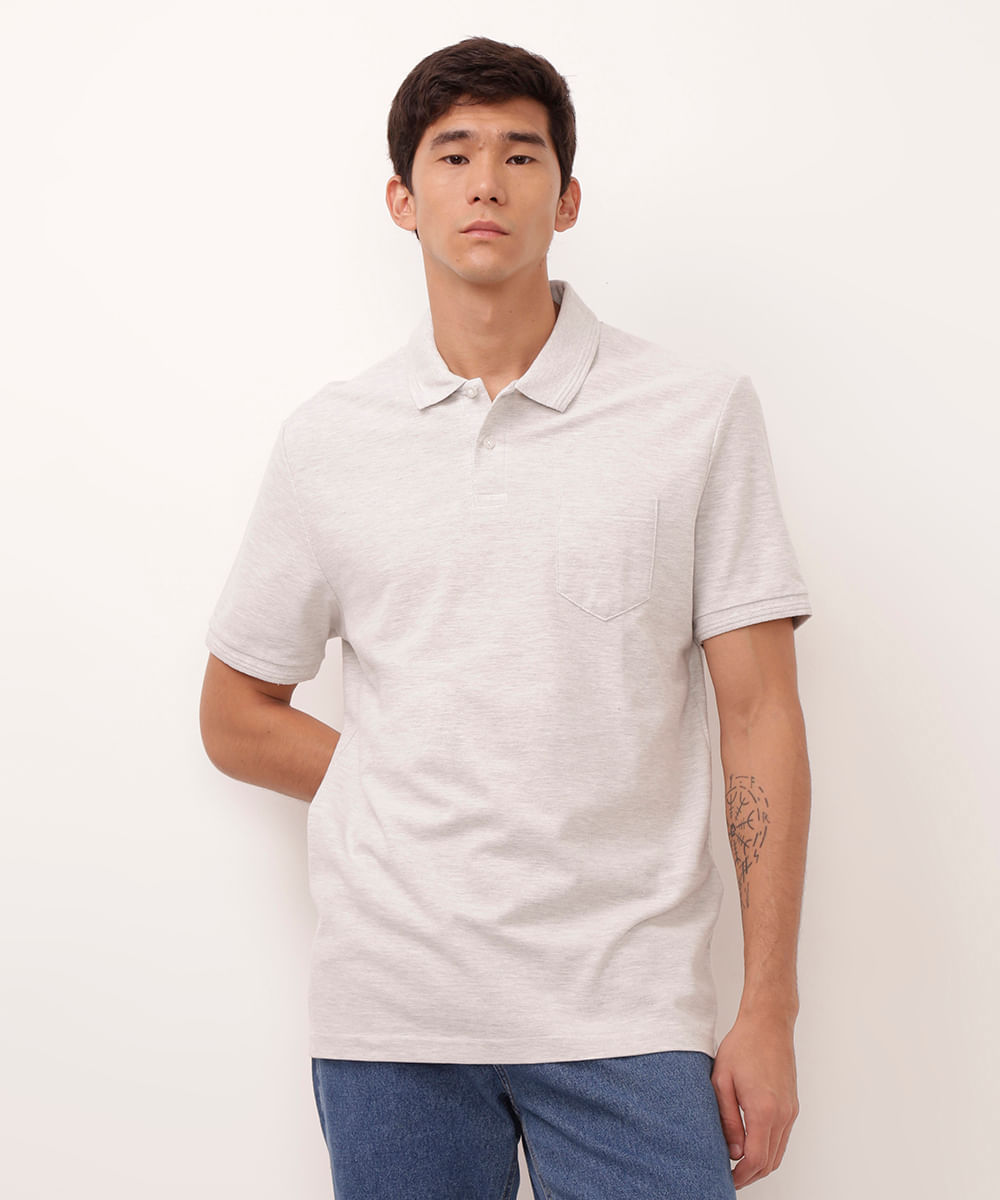 polo de algodão com bolso off white