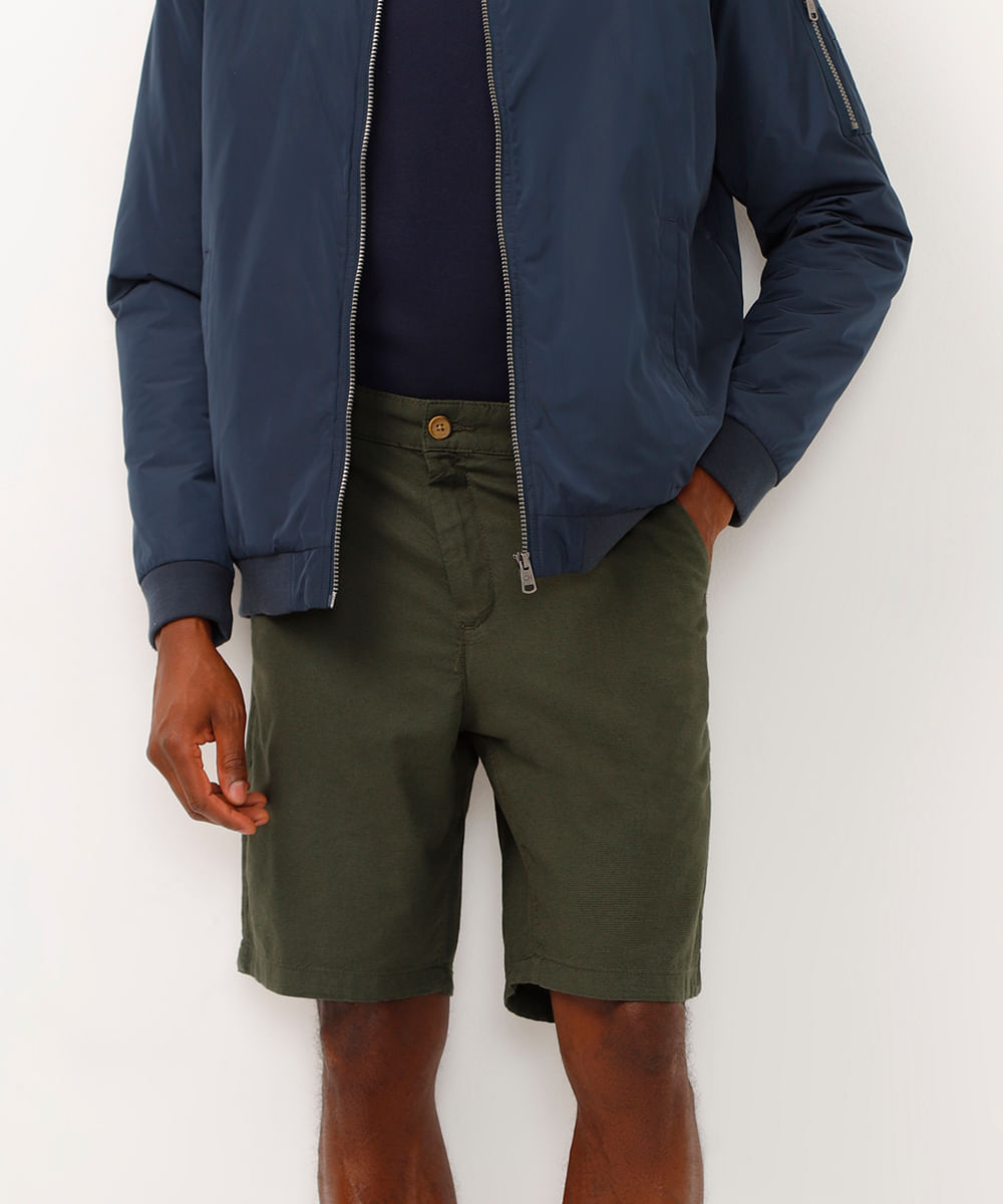 bermuda reta masculina com linho verde
