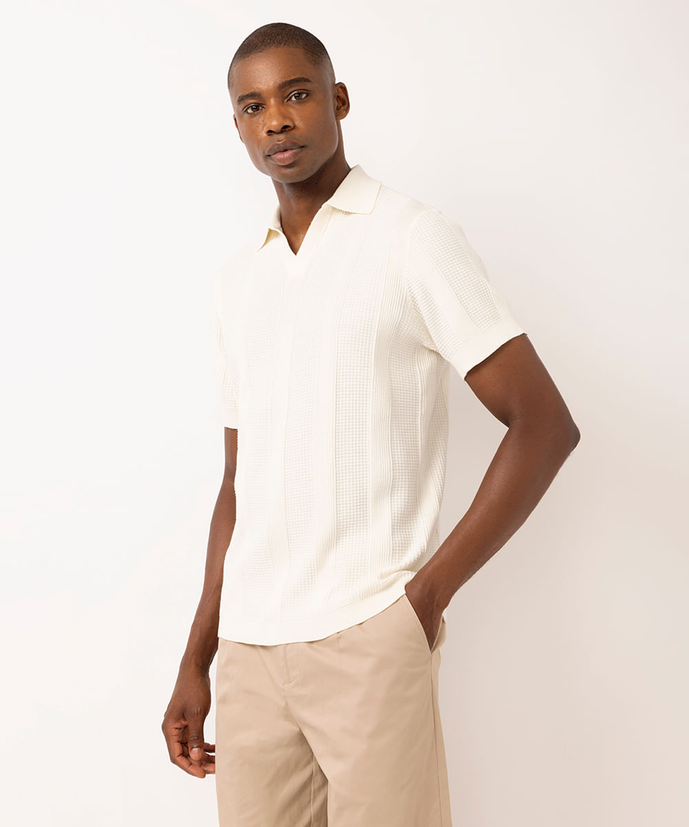 polo masculina de tricot texturizada off white