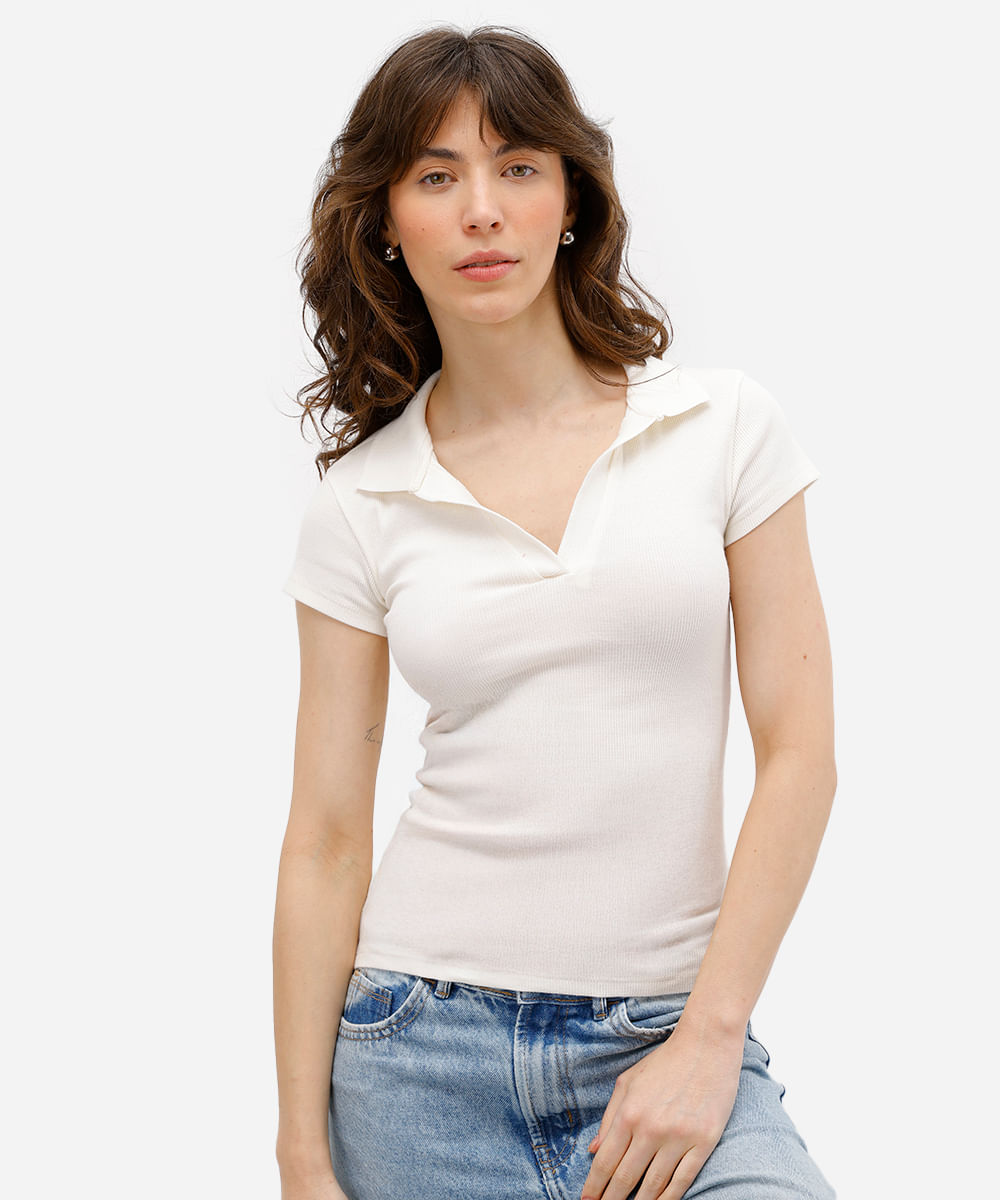 polo feminina de algodão canelada off white