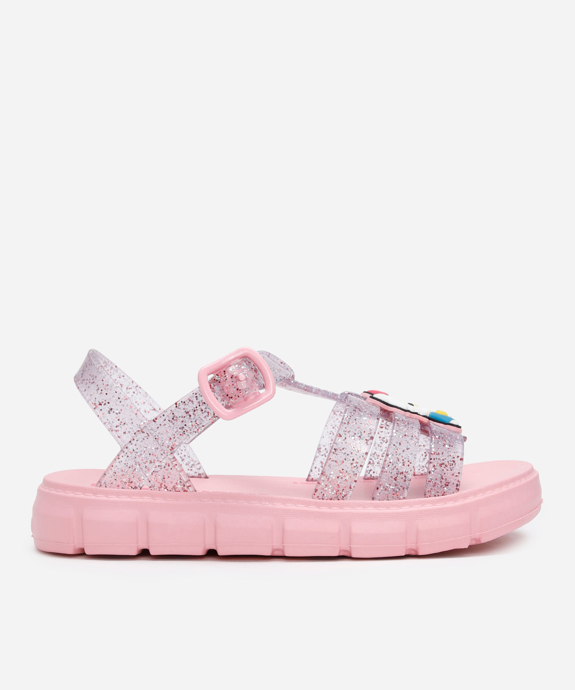 sandália infantil hello kitty com glitter grendene rosa