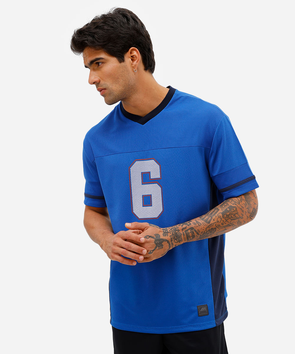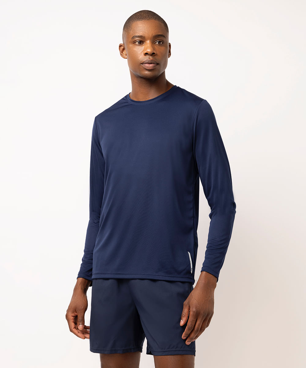 Camiseta Masculina Manga Curta Esportiva Ace Gola Careca com Tela Azul Marinho
