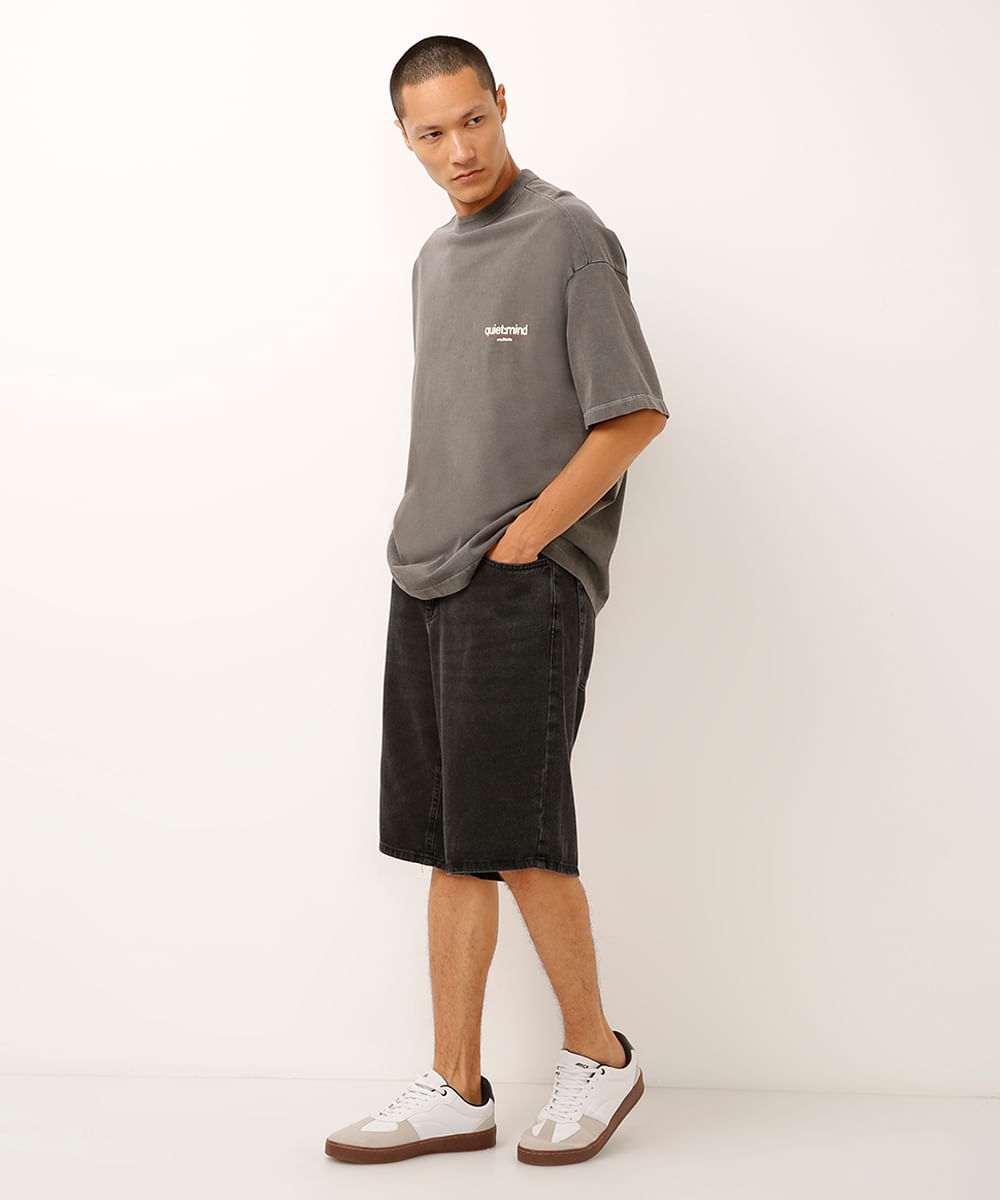 Bermuda Preta com Costura Branca Sarja Masculina Alleppo Jeans