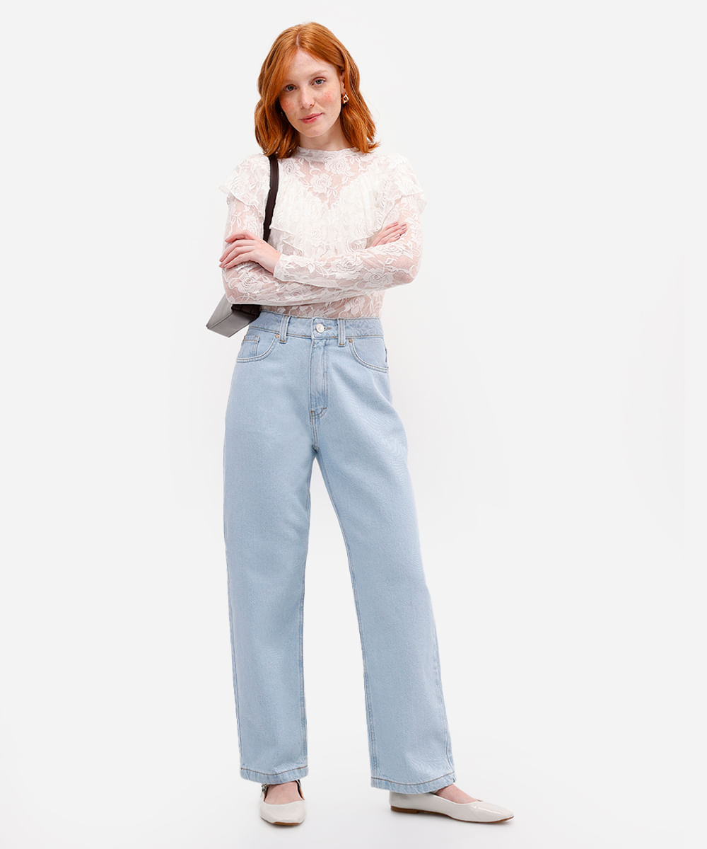 calça reta feminina jeans cintura alta azul