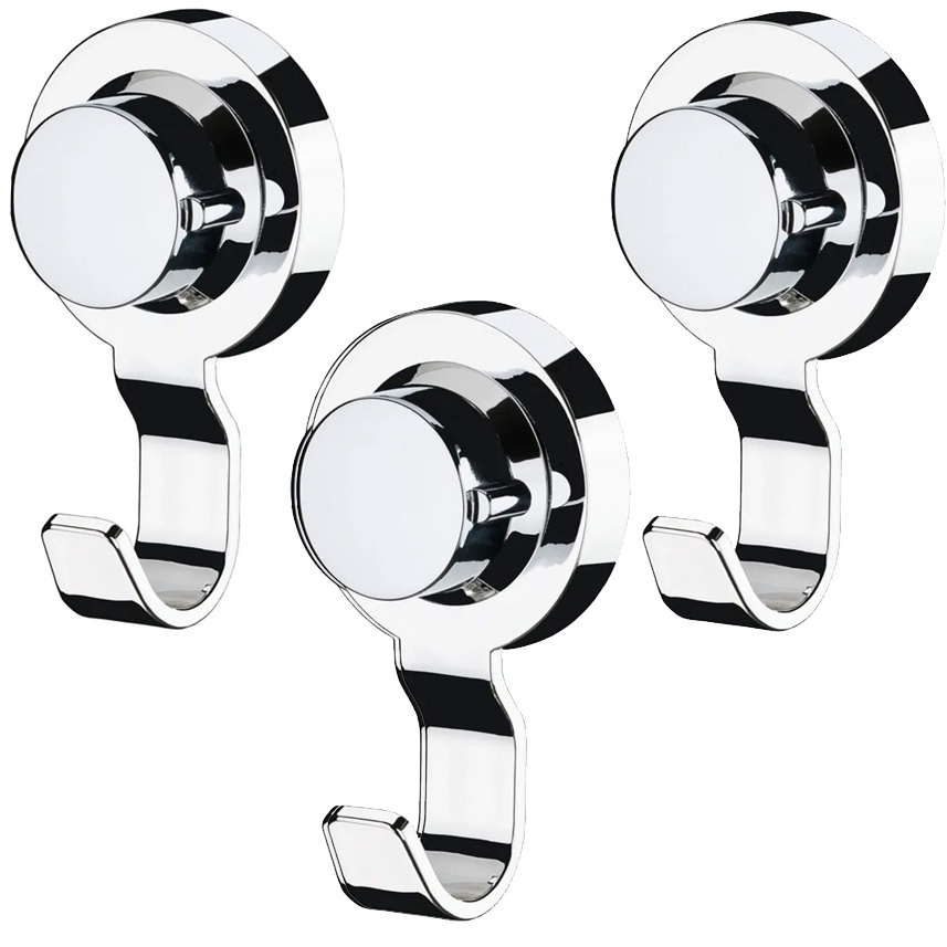 Kit 3 Porta Gancho Toalha de Rosto Ventosa Banheiro Lavabo Cromado