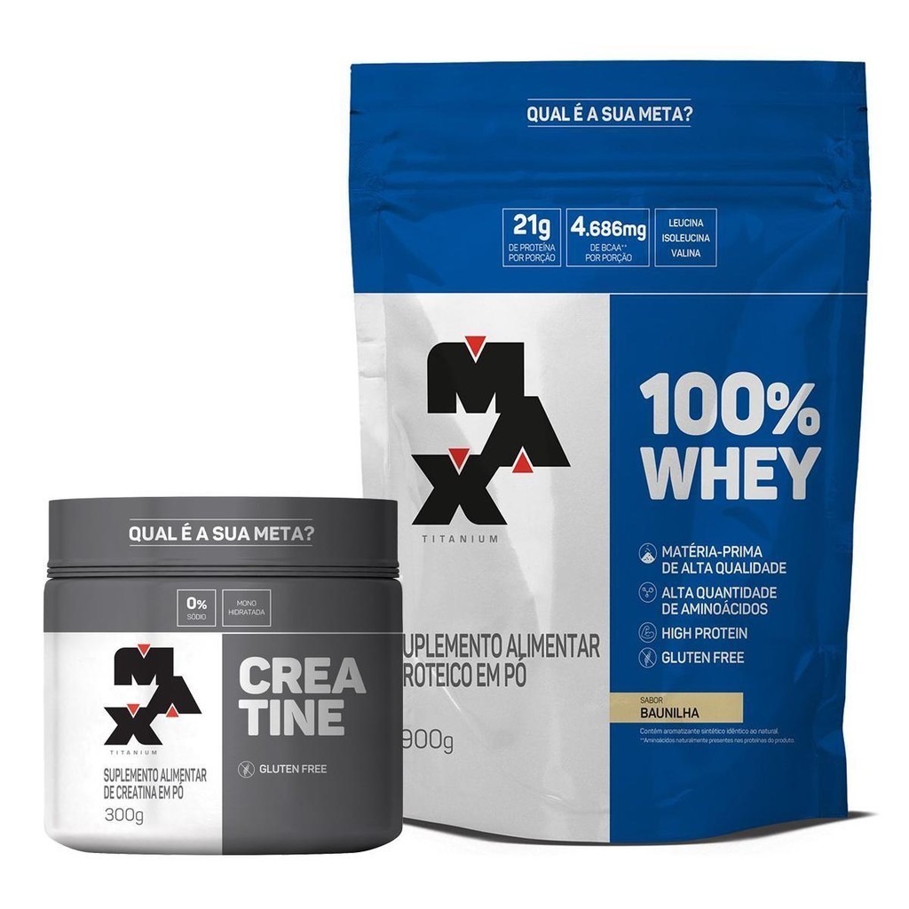 100% Whey Refil Baunilha 900G + Creatina Monohidratada 300G - Max Titanium