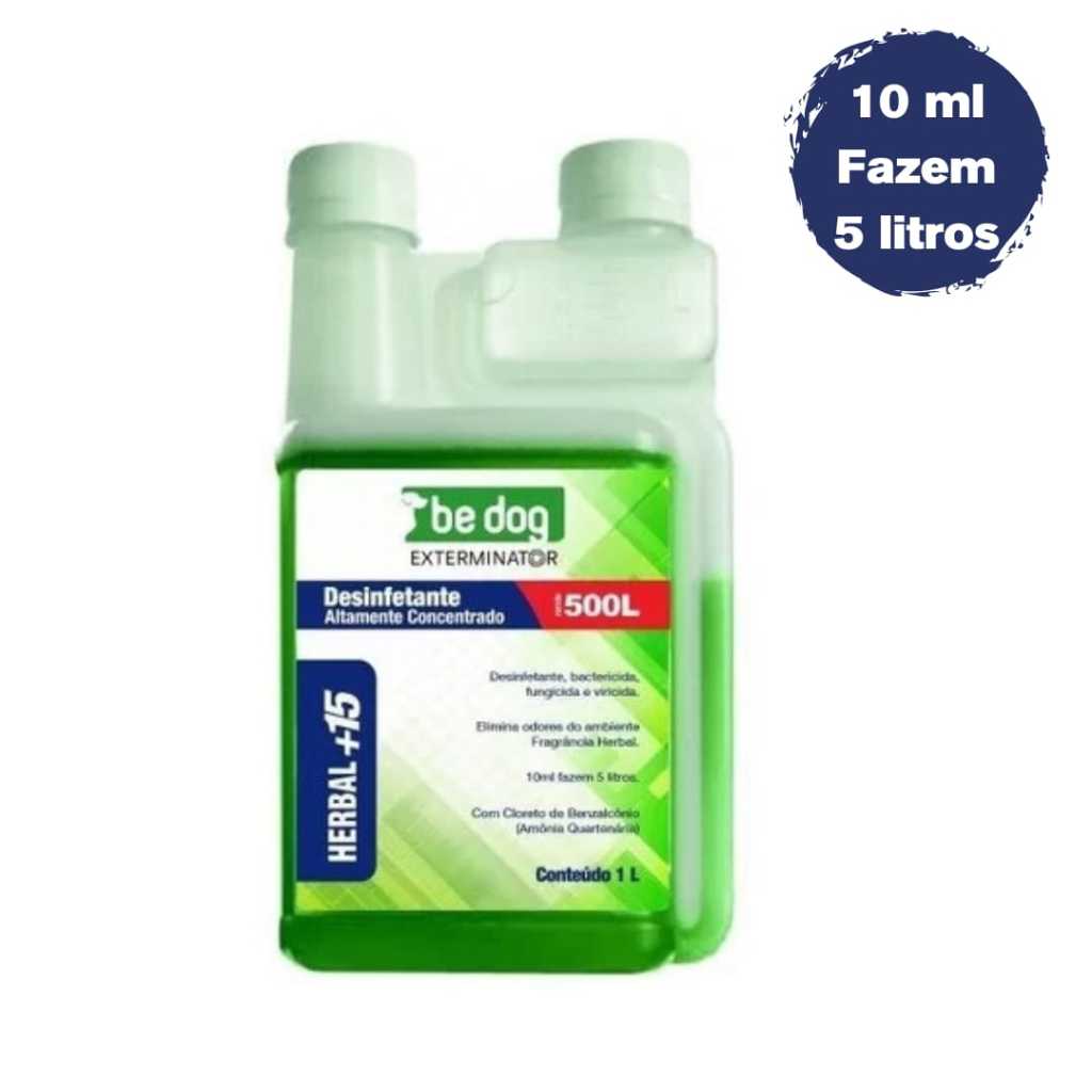Desinfetante Super Concentrado Herbal + 15 Pet Tira Cheiro 1L Rende 500L Limpa Higieniza e Elimina Bacteria BeDog