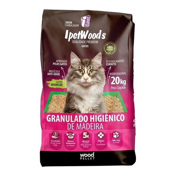 Granulado Higiênico De Madeira Para Gatos 20 Kg - Ipet Woods