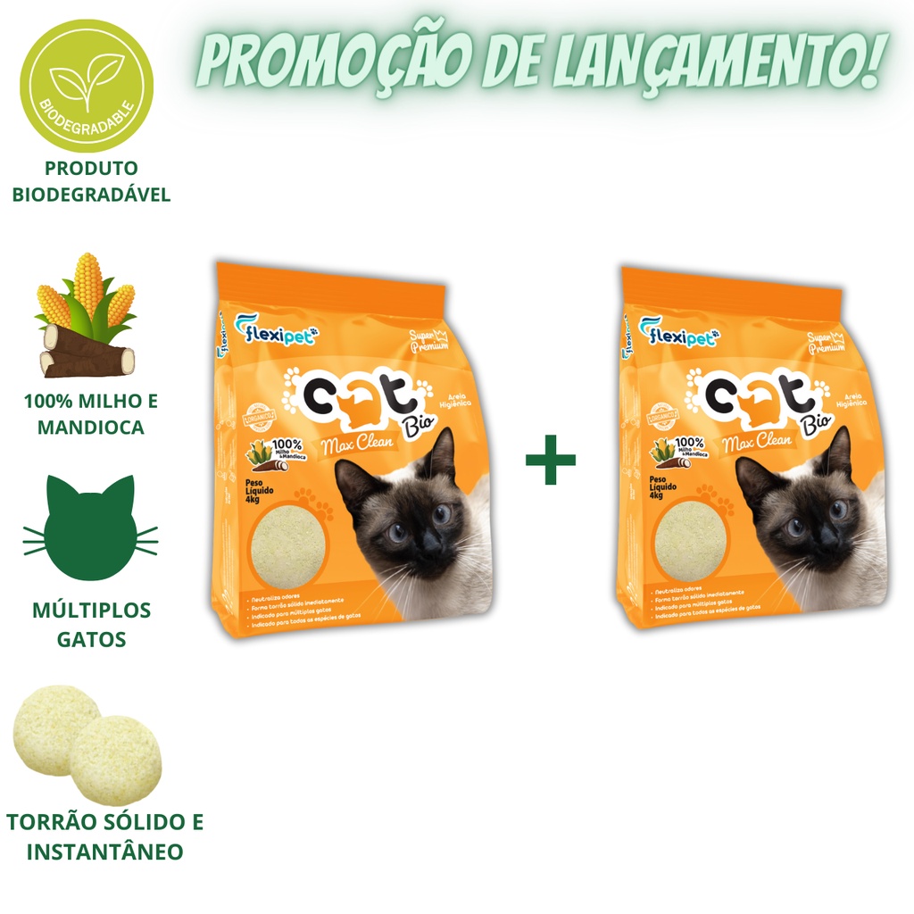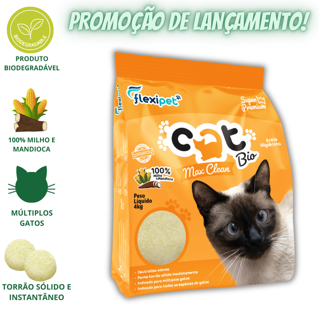 Areia Higiênica Biodegradável Catbio 4 Kg - Max Clean - Grãos Finos