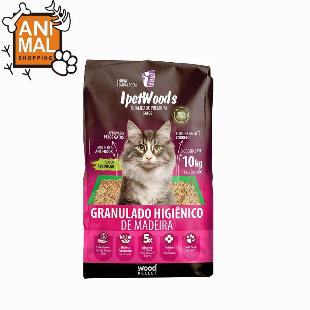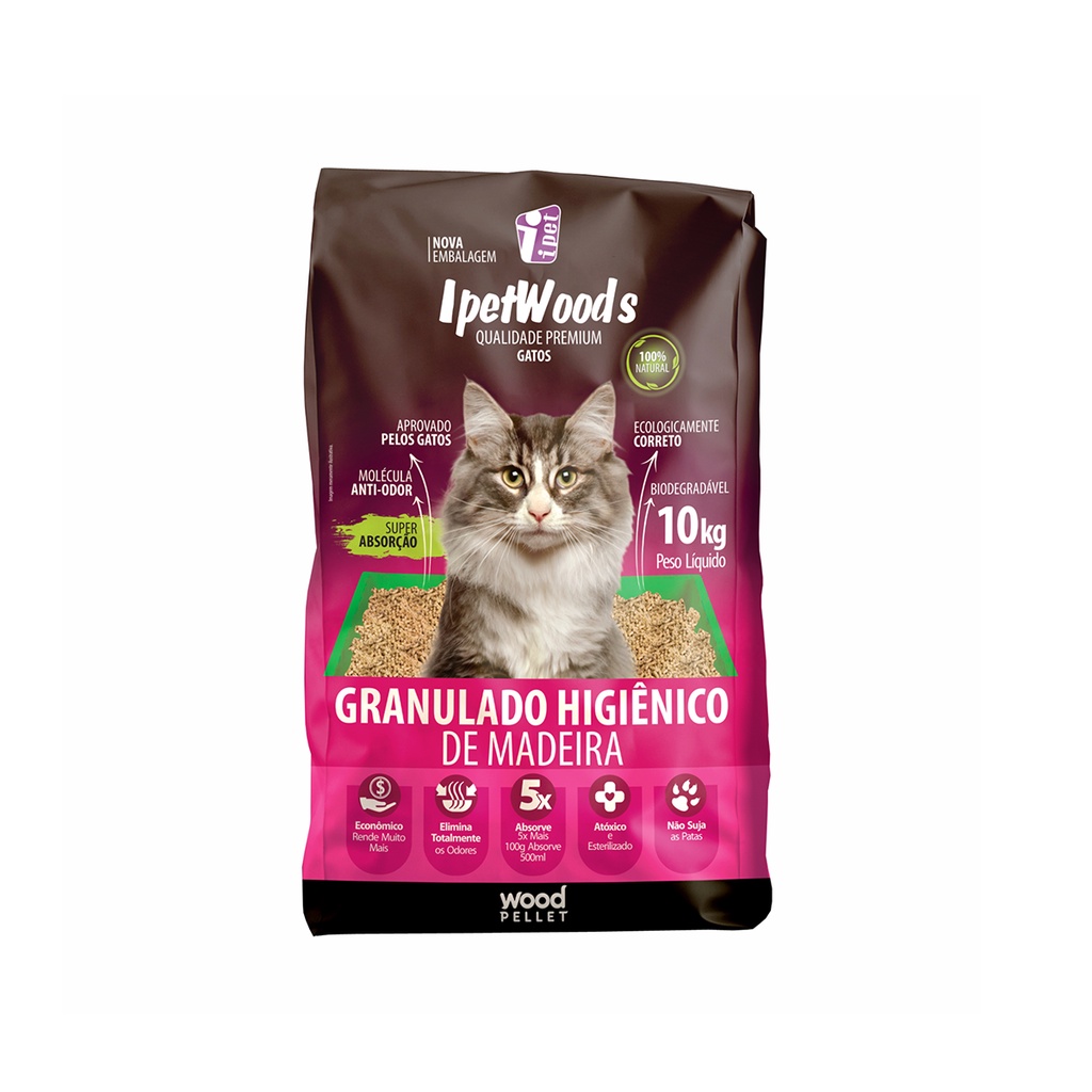 Granulado De Madeira Higiênico para Gatos 10 Kg - Ipet Wood's