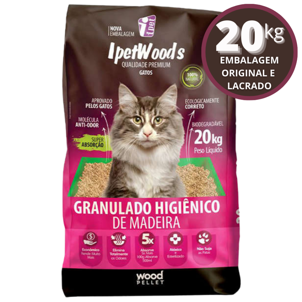 Granulado Higiênico De Madeira Para Gatos 20 Kg - Ipet Woods