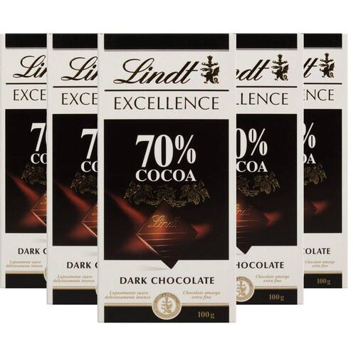 Kit Com 5Und Chocolate Suiço Lindt Excellence Dark 70% 100G