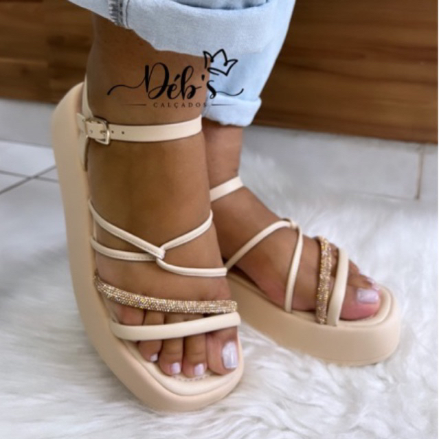 Sandália Ramarim Feminina Flatform Papete Com Strass 23-39203