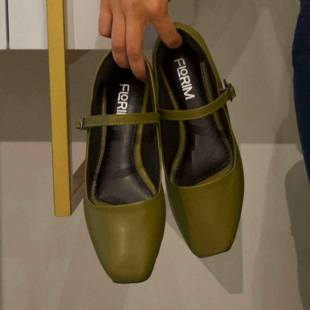 Sapatilha Feminina Bico Quadrado Confortável Verde Militar