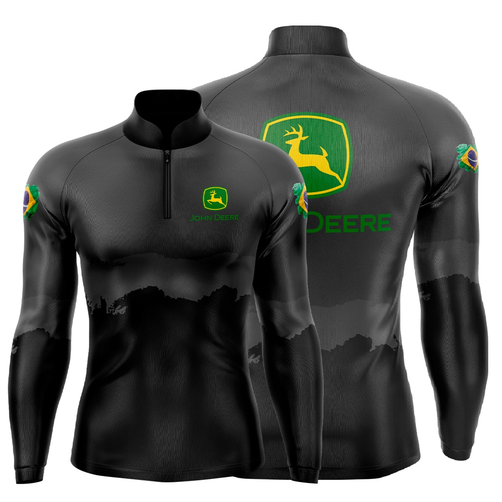Camisa Camiseta Agro Fazenda Trator Agricultura John Cinza Com Proteção Solar UV50+