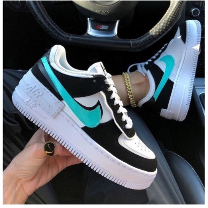 Tênis Feminino Nke AirForce 1 Branco Preto Verde água Shadow Casual Moda