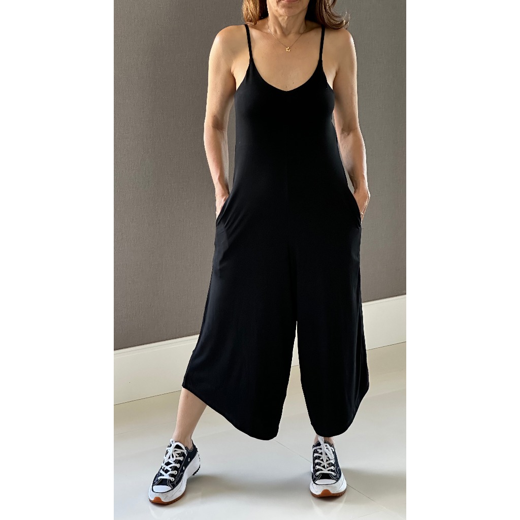 Macacão em Visco Feminino Soltinho com Alcinha de Regular e Bolso - Tecido Confortável e Fresco