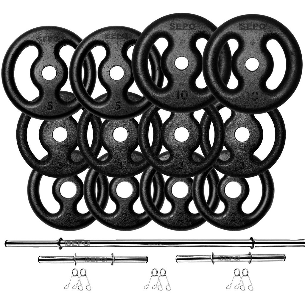 Kit 30Kg em Anilhas de Ferro e Barras de 40cm e Barra de 1.20m