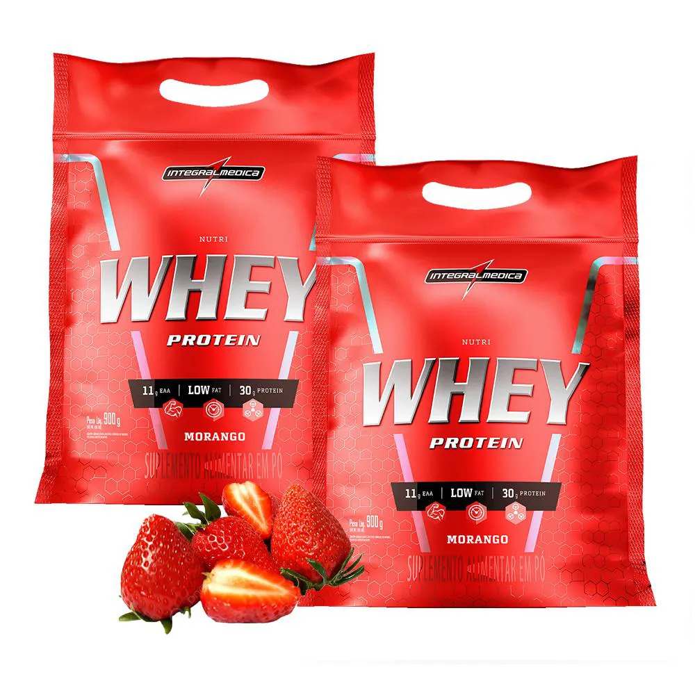 Kit 2x Nutri Whey Protein Integralmedica 900g Sabor Morango