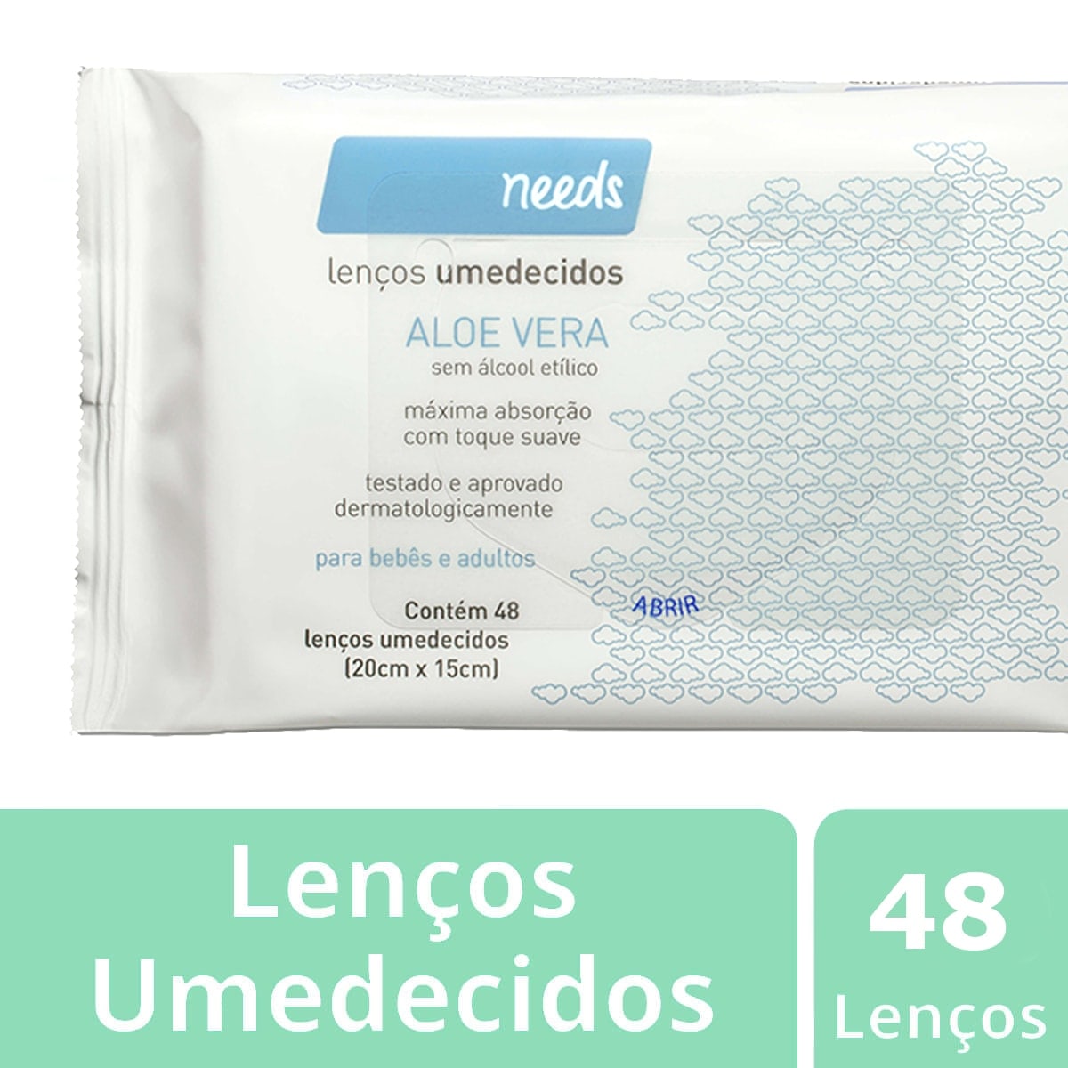 Lenço Umedecido Needs Aloe Vera com 48 unidades