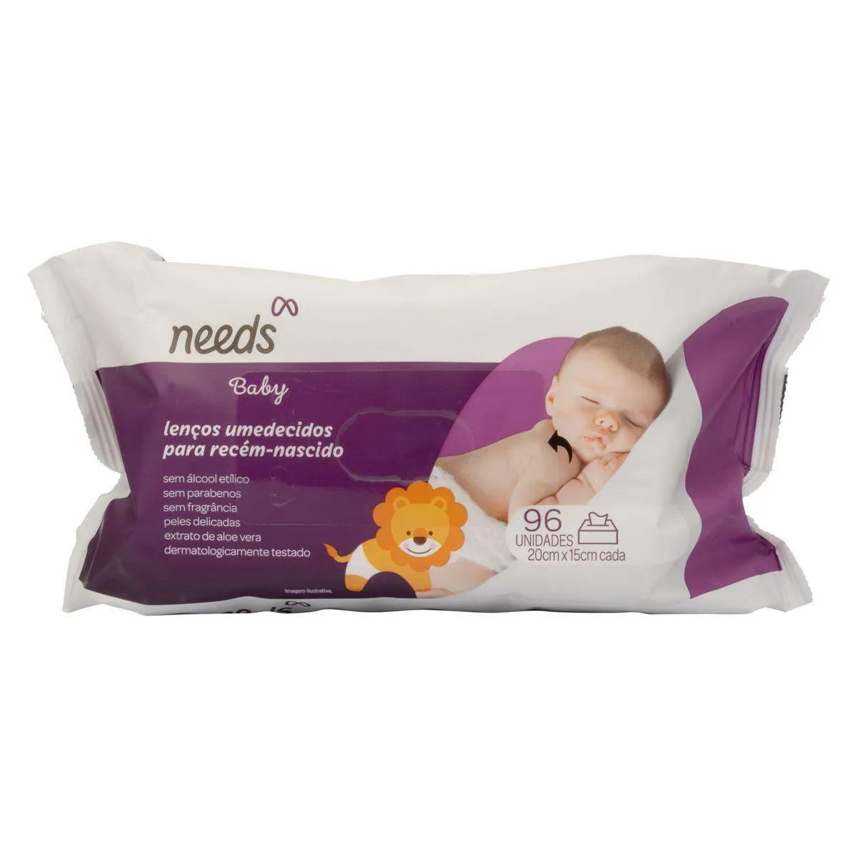 Lenço Umedecido Needs Baby Recém-Nascido Peles Delicadas Aloe Vera Sem Álcool Etílico Sem Fragrância 96 unidades