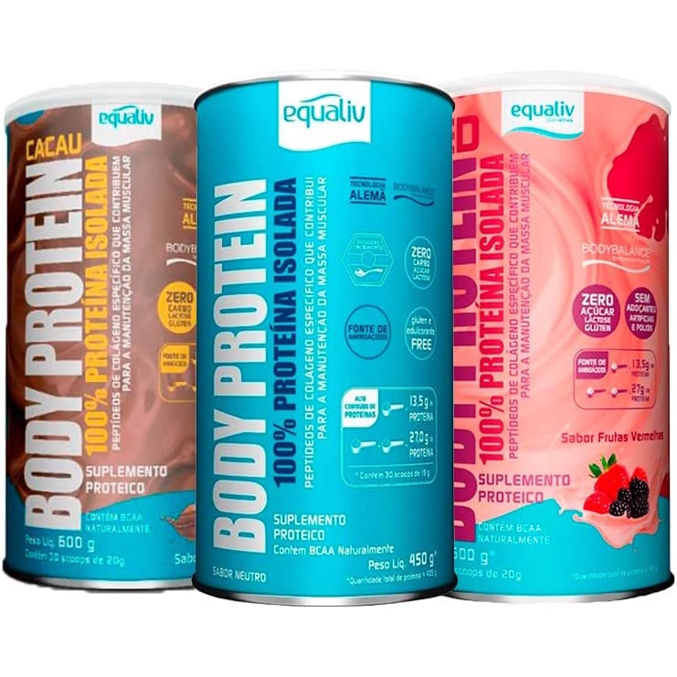 BODY PROTEIN PROTEíNA ISOLADA COLáGENO HIDROLISADO EQUALIV SEM Sabor 450g
