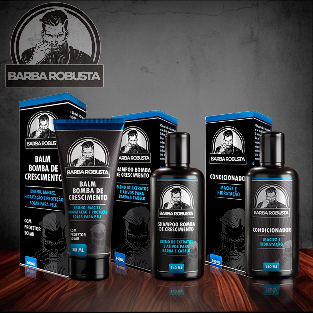 Kit para cuidados da barba shampoo, condicionador, Balm para crescimento dos fios