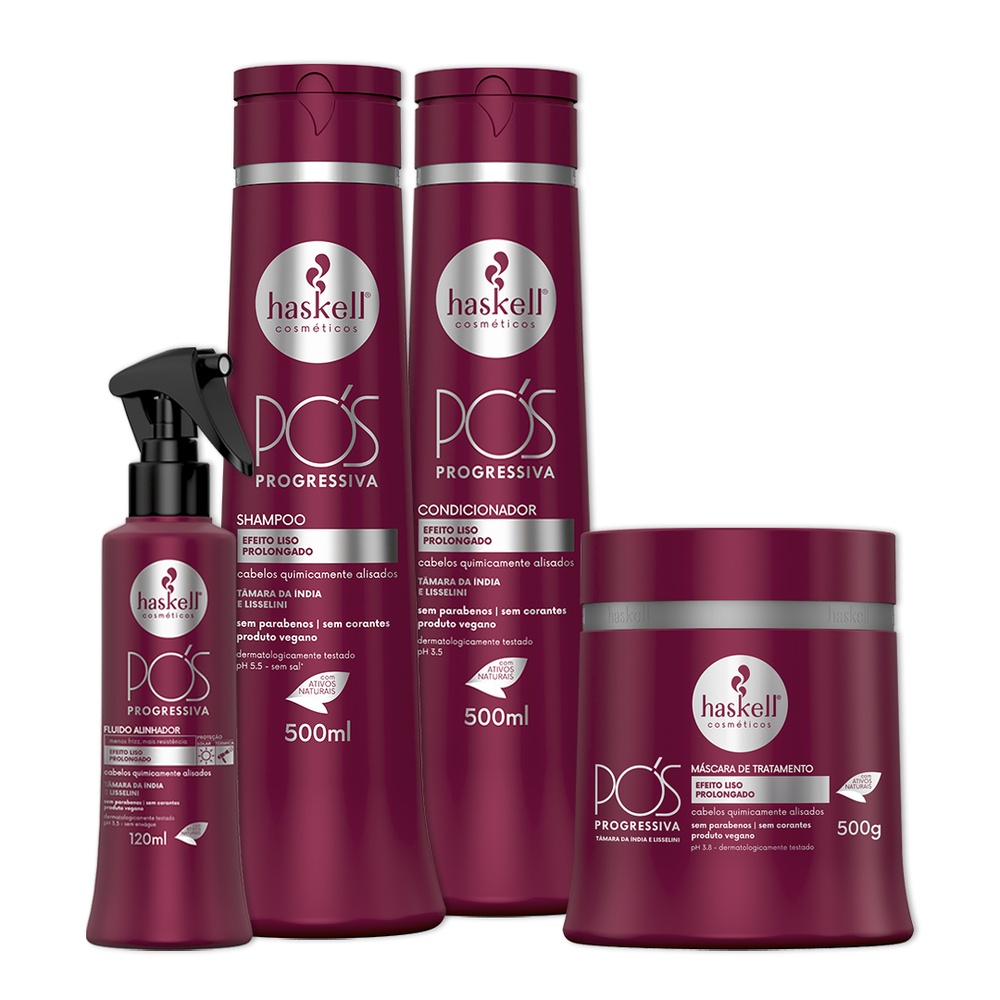 Kit Haskell Pós Progressiva Shampoo Cond Masc e Fluido 500ml