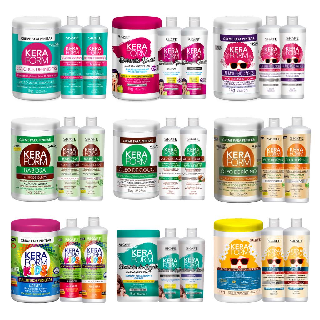 Kit Skafe Shampoo Cond e Mascara Cabelo Liso e Cacheados