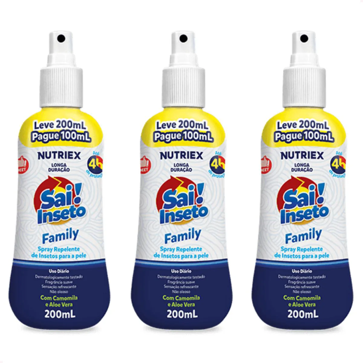Kit 3 Repelentes Sai Inseto Spray Family 200ml 4H