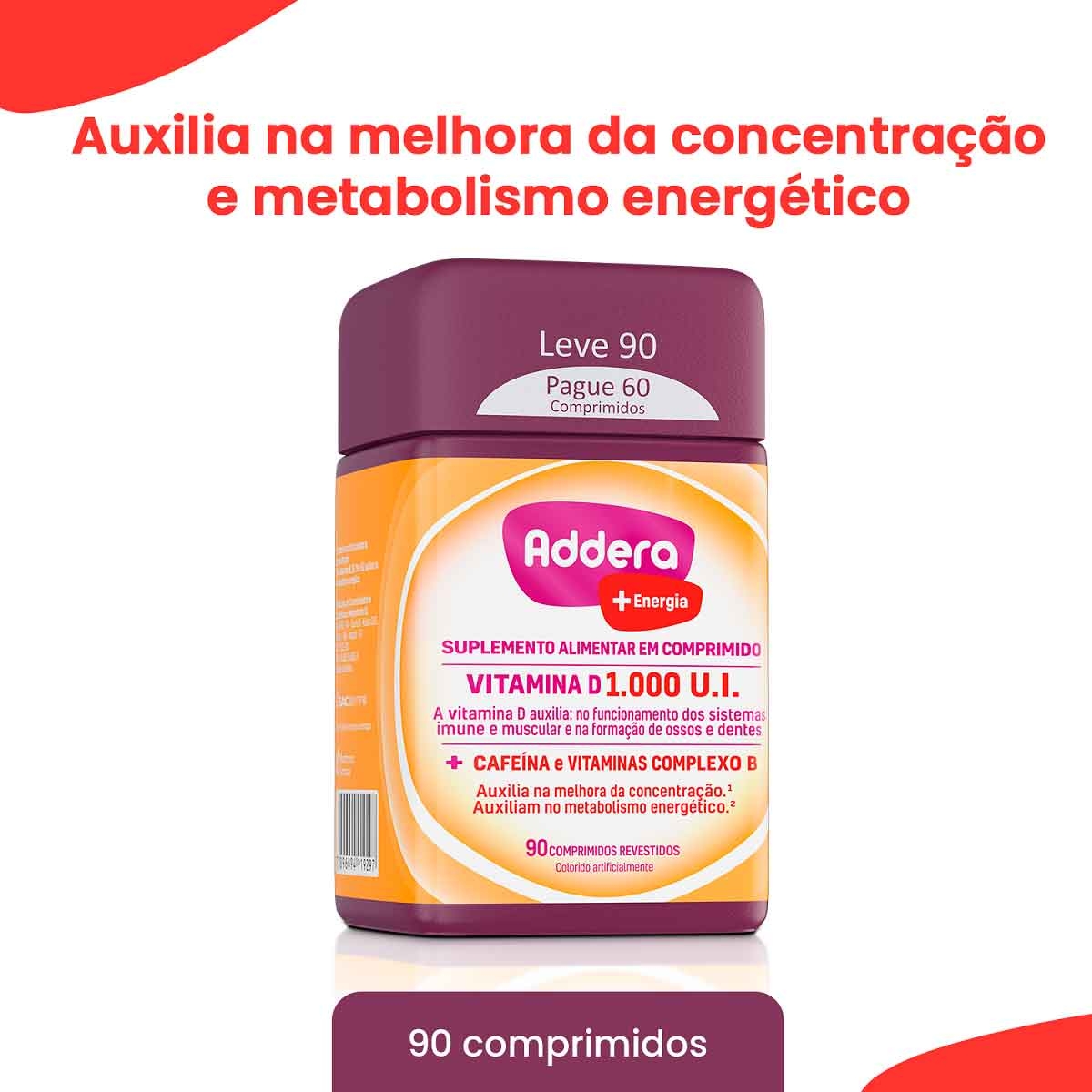 Vitamina D Addera +Energia 1.000UI com 90 Comprimidos