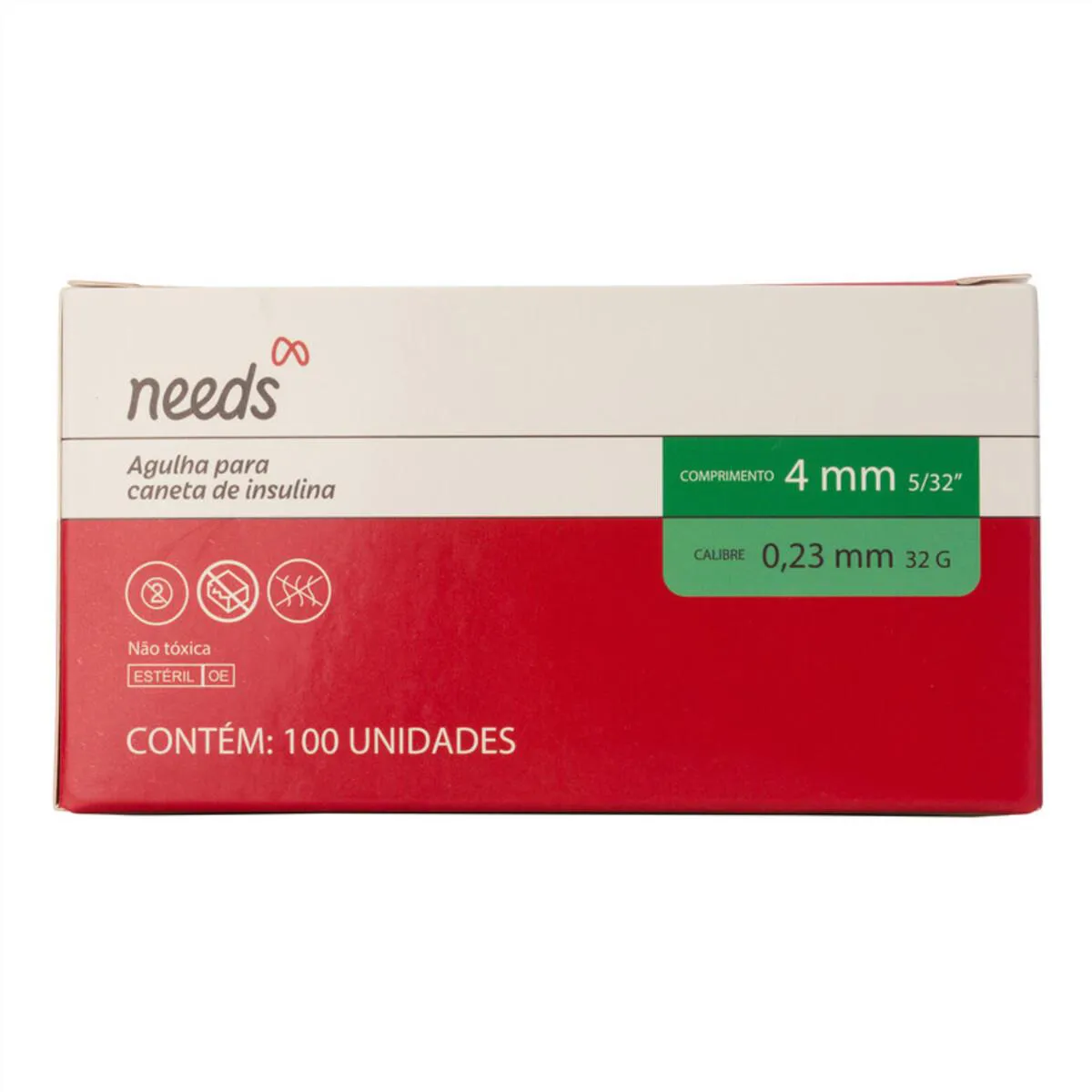 Agulha para Caneta Aplicadora de Insulina Needs 4mm 100 unidades