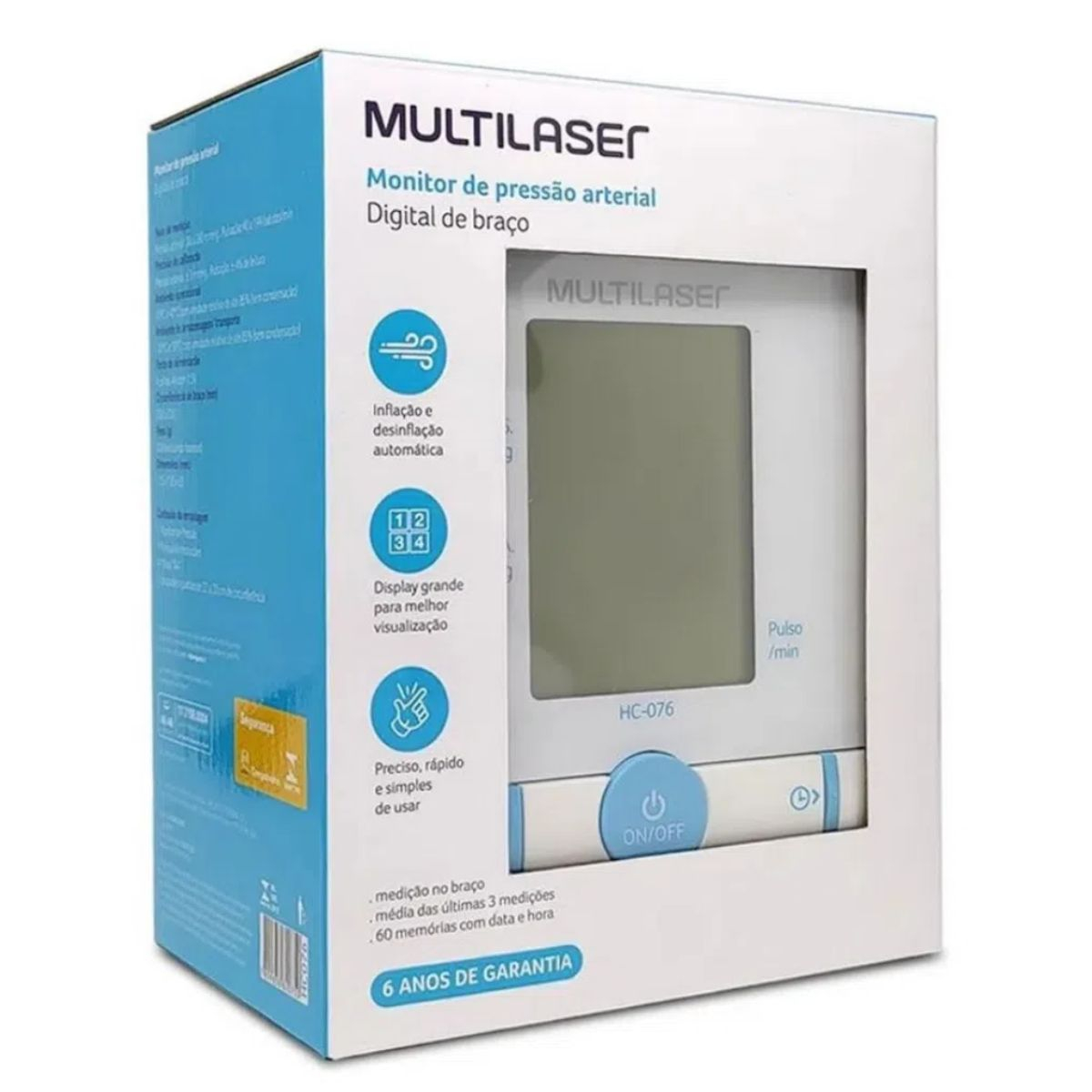 MONITOR DE PRESSÃO ARTERIAL DIGITAL DE BRAÇO MULTILASER HC076