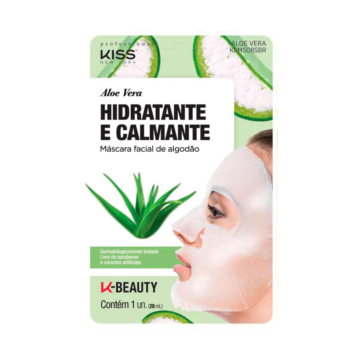 Máscara Facial de Algodão Kiss NY Aloe Vera Hidratante e Calmante com 1 unidade