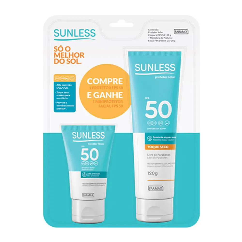 Kit Farmax Sunless Protetor Solar FPS 50 120g + Protetor Facial FPS 50 30g Farmax
