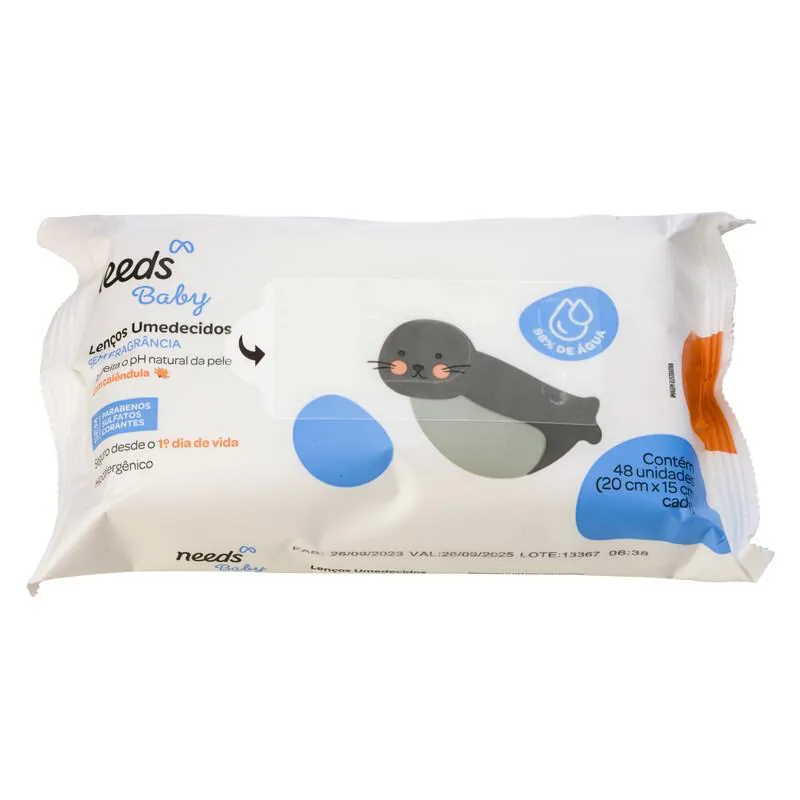 Lenço Umedecido Needs Baby 98% Água Sem Fragrância com Calêndula 48 unidades
