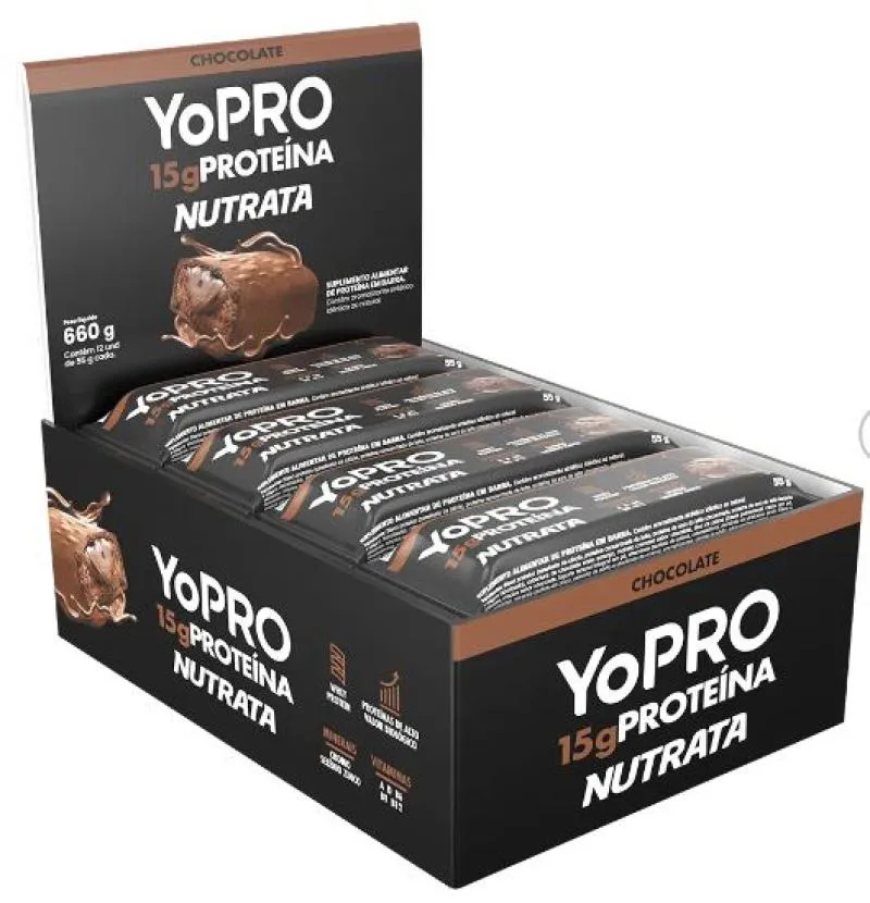 BARRA YOPRO SABOR CHOCOLATE C/ 12 UN 55G (15G PRO)
