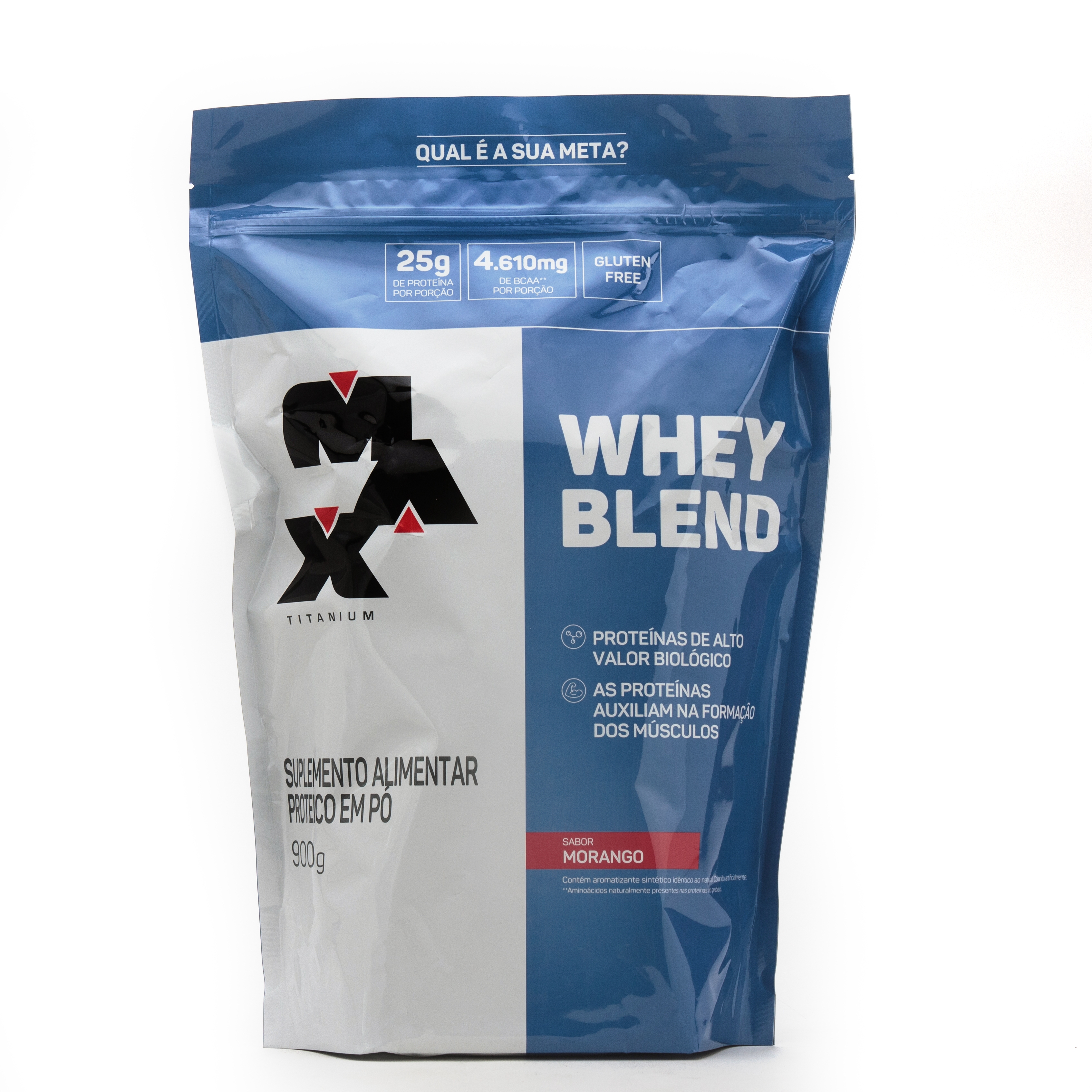 Suplemento Alimentar Protéico em Pó Whey Blend Max Titanium Sabor Morango 900g