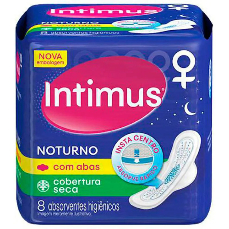 Absorvente Noturno Intimus Com Abas Cobertura Suave com 8 unidades