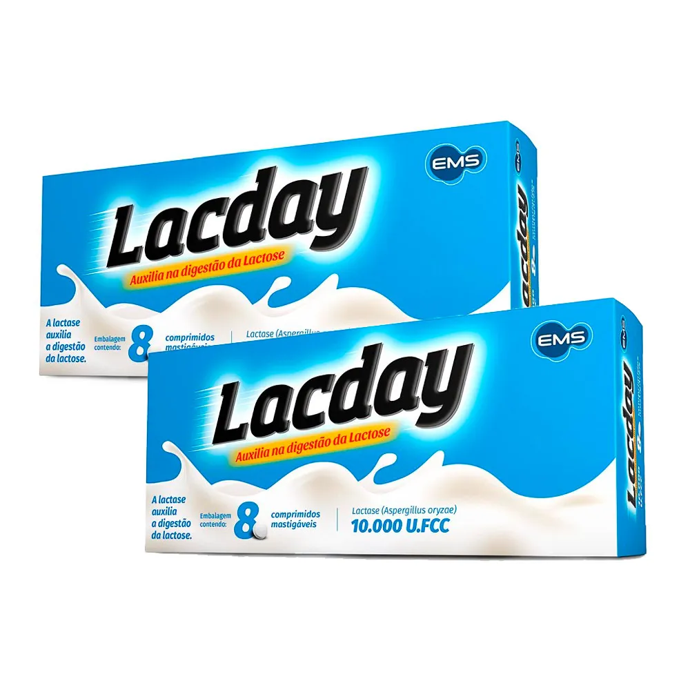Kit 2 Lacday 10.000U.Fcc Enzima Lactase 8 Comprimidos Mastigáveis