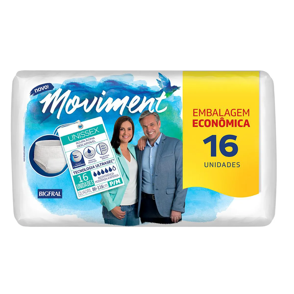 Roupa Íntima Descartável Unissex Bigfral Moviment P/M Absorção Moderada a Intensa 16 unidades
