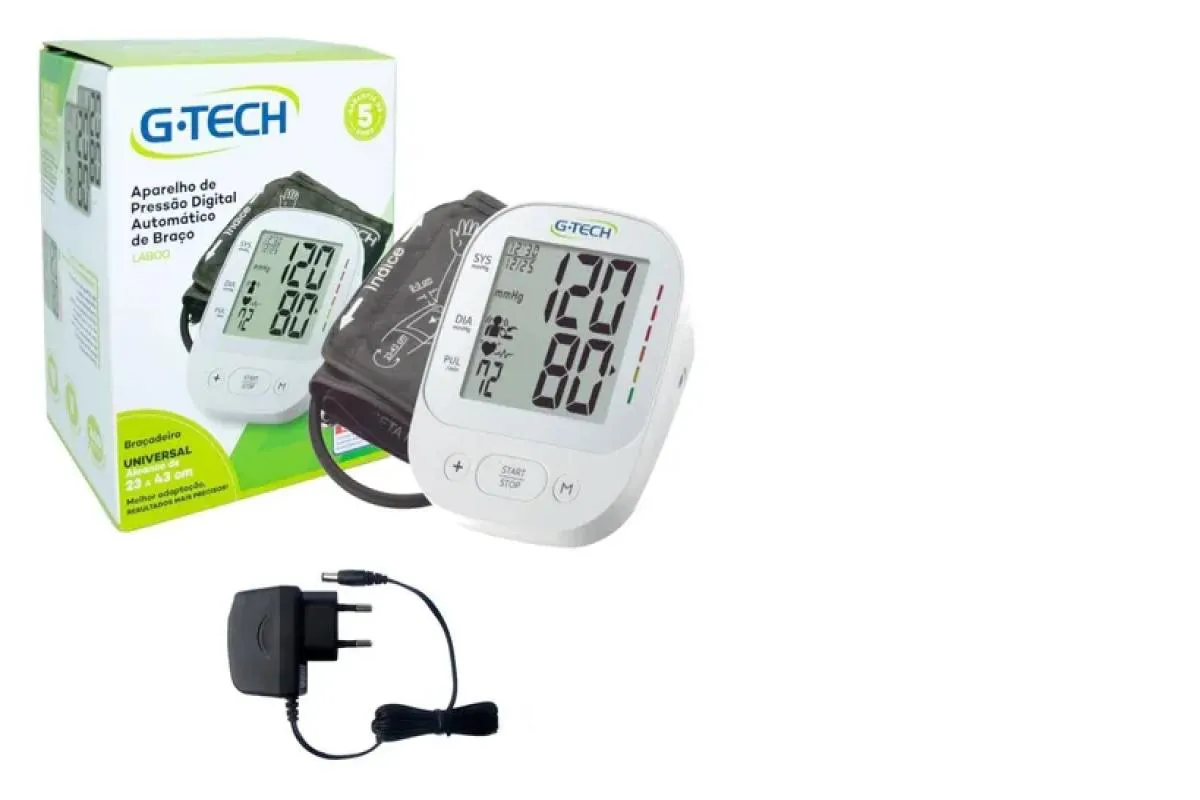 APARELHO DE PRESSãO DIGITAL AUTOMáTICO DE BRAçO G-TECH LA800 COM FONTE