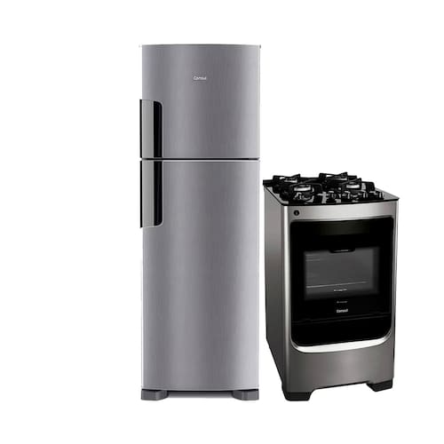 Geladeira Consul Duplex CRM44AK Frost Free com Altura Flex, Função Turbo e Freezer Espaçoso Inox - 386 litros + Fogão 4 Bocas CFO4VAR Inox - Bivolt - 110V
