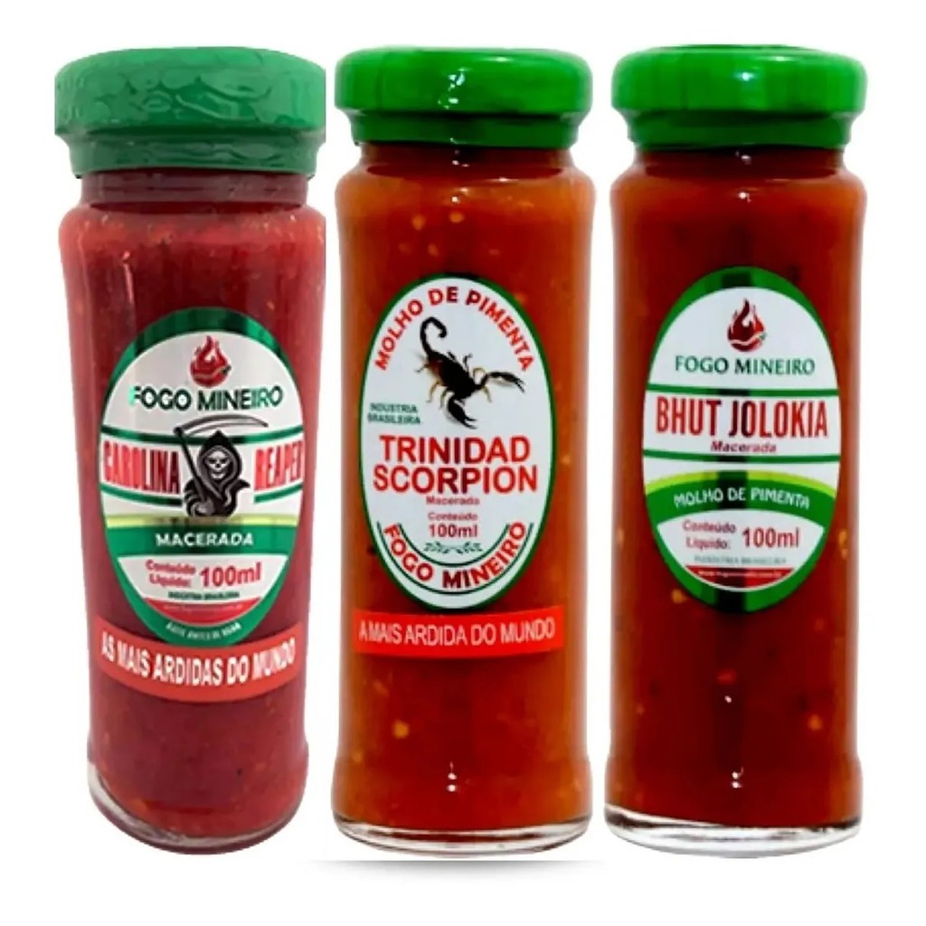 Kit Pimentas Mais Fortes Do Mundo Carolina,scorpion,bhut Macerada 100