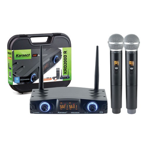 Microfone Duplo Mão Sem Fio Karsect Krd200 Dr Recarregável KRD200DR TIPO SHURE BATERIAS RECARREGAVEIS TIPO KADOSH
