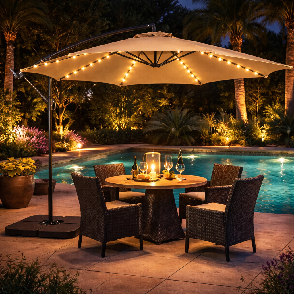 Ombrelone com Led Articulado Guarda Sol de Praia Jardim Lateral 3 Metros Bege Rm Decor