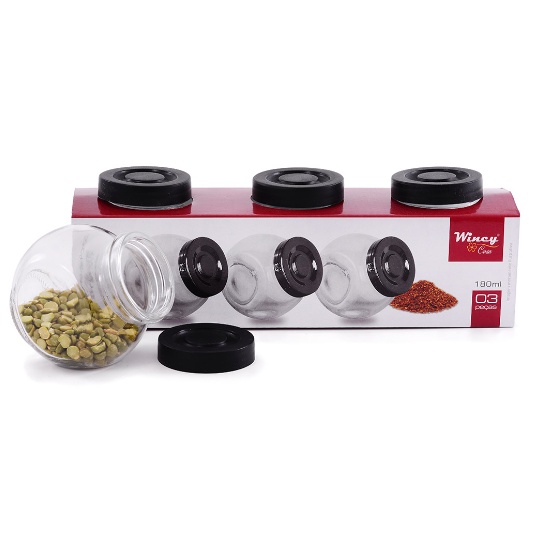 Porta Condimento De Vidro Com Tampa De Plastico Preto Com 3 Pecas 180ml Na Caixa
